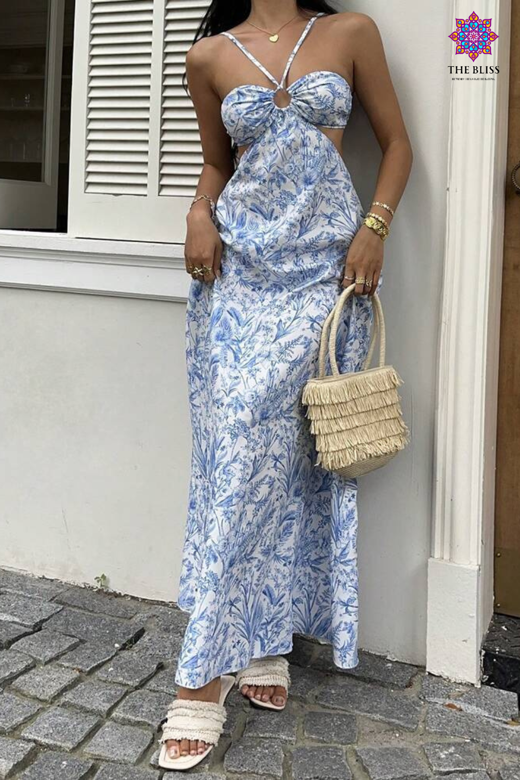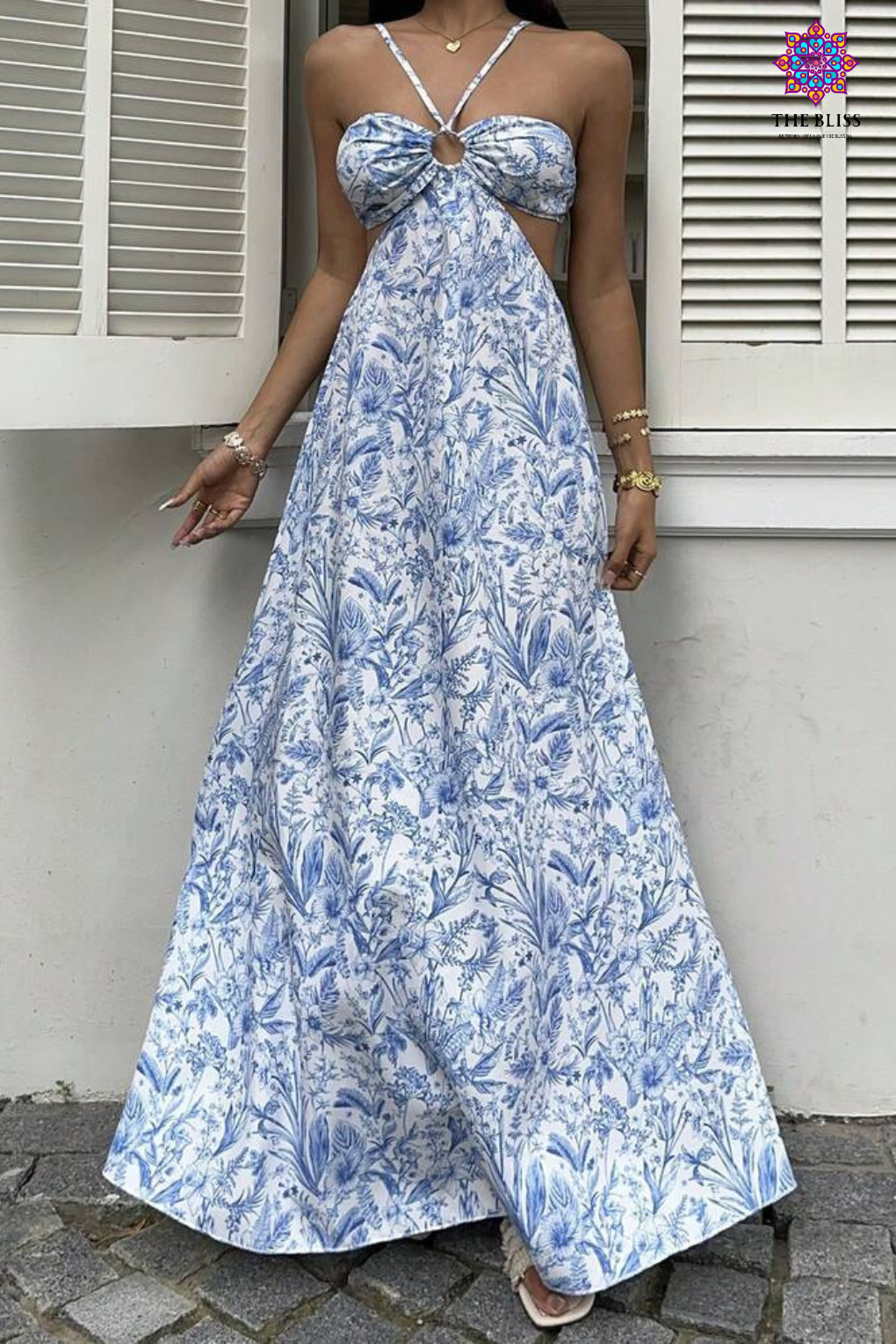 Blue Meadow Cut-Out Maxi