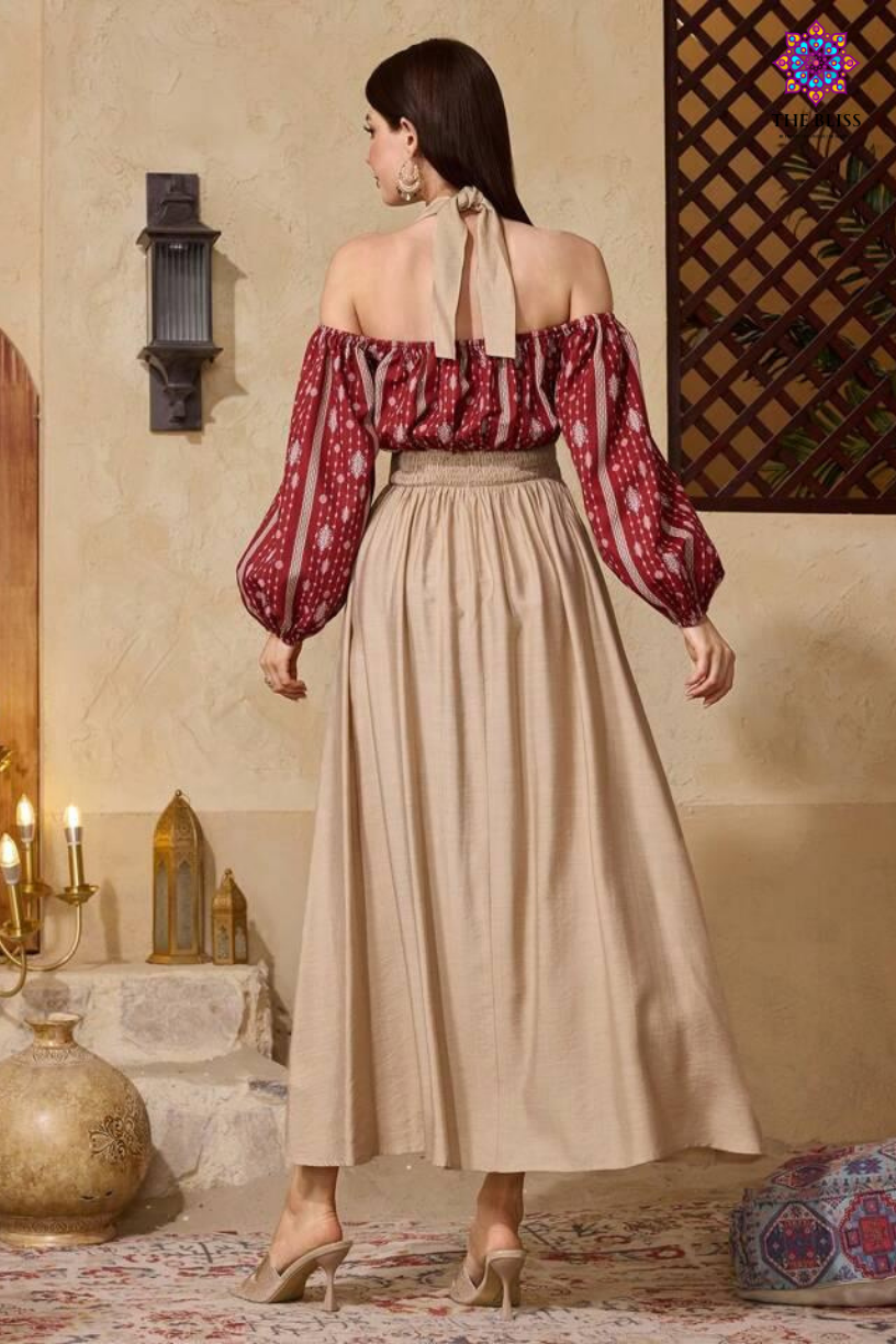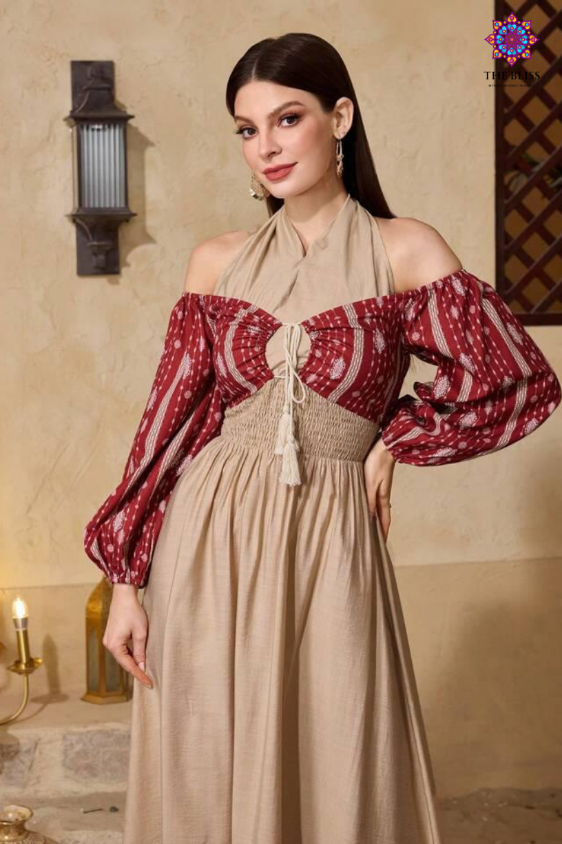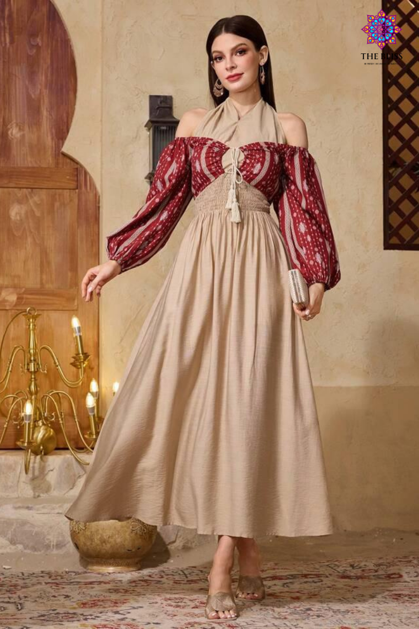Splicing Print Halter Dress